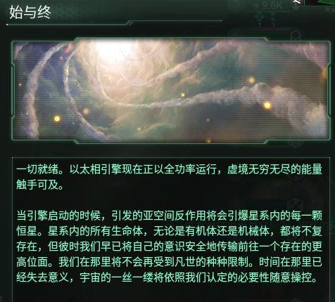 2.伟大的成就都需要牺牲,其他的文明或许不会理解我们,不过他们不得不妥协。以太相引擎完成,星系的所有生命都被抹除,剩下的只有虚无。所有恒星都炸了,全变成黑洞了,宇宙清静了