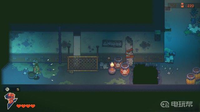 BOSS战。步骤1:如下图箭头所指,扔个炸弹过去,水流引导炸弹将出水口炸毁。