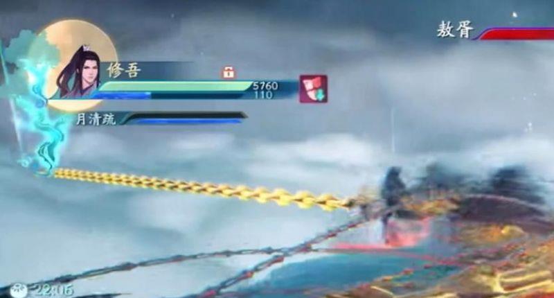 3、后半段操控角色变为修吾。此时敖胥神尊伤害最大的招式是进行长距离的锁链攻击,这一招没有什么破解的方法,只能多跑动和调整视角。只要能避免伤害,找机会发动攻击,就不难打赢。