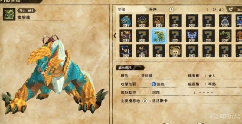 强度高外观也十分帅气,相信是不少人最想要入手的怪物之一。驾驭动作是跳跃,可以拿来替换迅猛龙王。雷狼龙的位置在纳维雪岭,从计程猫站出发往上方走一段路就可以到达。