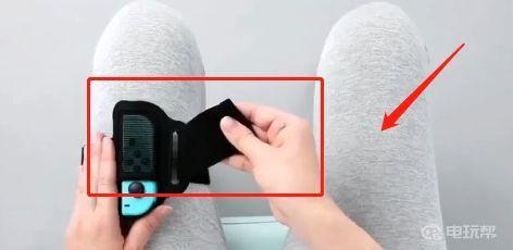 2、将左边的Joy-Con好好插进腿部固定带深处,然后坐在椅子上,紧跟着就要在腿部安装Joy-Con。