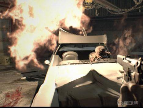7、干掉老头后汽车爆炸将老头炸飞,从车库左边的楼梯爬上去绕过关闭的车库门回到客厅,这里还有一段剧情,被炸昏的老头又爬起来拿伊森的枪朝自己的头开了一枪。