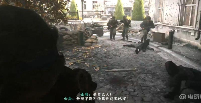4.沿着大厅左侧的走廊前进,记住全程慢走即可,即便前方有德国兵出现,他们都因交战而无法顾及丹尼尔斯他们。快要去到门口的时候,需要进入左侧的办公室,从而绕过战区,出到门口时,丹尼尔斯就会看见同伴迎面而来。