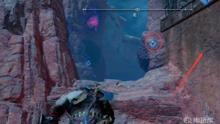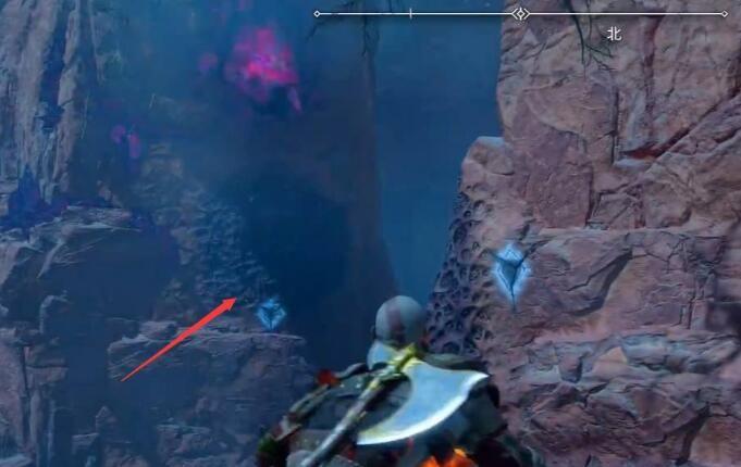 接着跳向右边的石柱上,然后往右侧攀爬石壁到其背面。