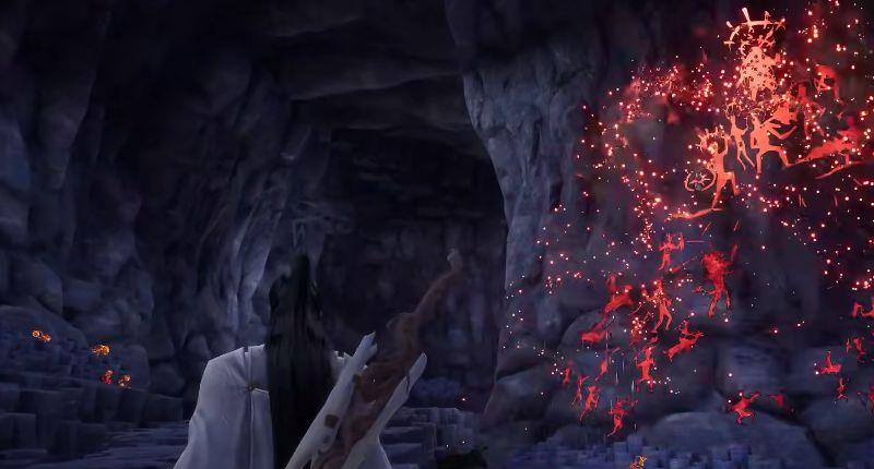 8、接下来的路主要是对剧情的一个补充,在洞里的壁画看到三族大战的描述