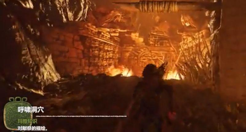 3、接着往前,直接从石台上爬上右前方洞口(不要走树杆,会被风吹下来),进入来到古墓挑战所在。