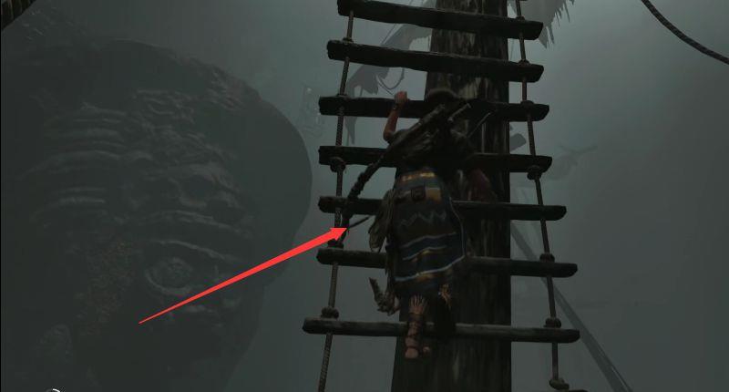 36.跳到桅杆上,抬头通过头顶的木梯往上爬
