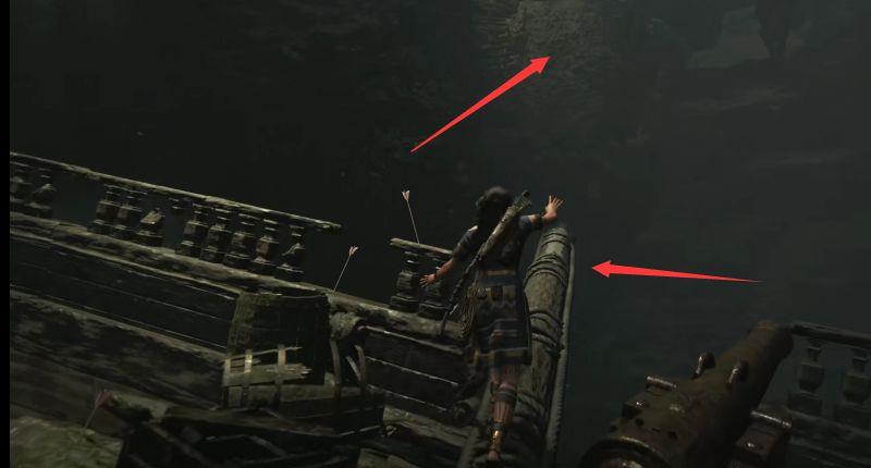 18.从箭头位置下水,前往大船的另外一边