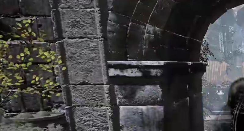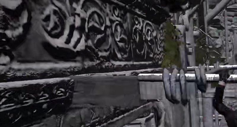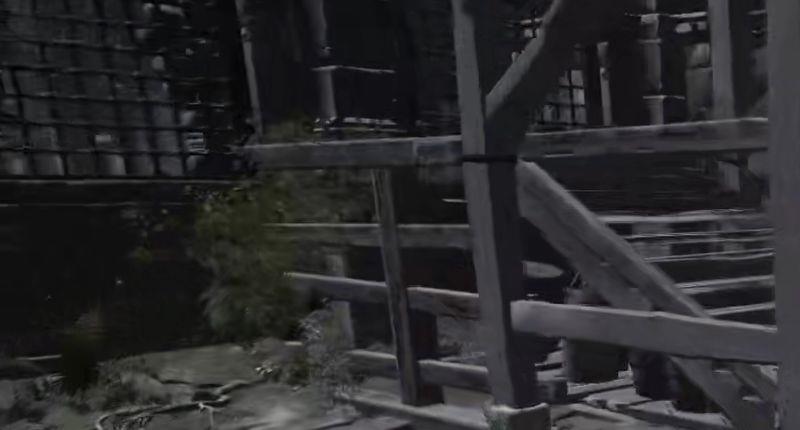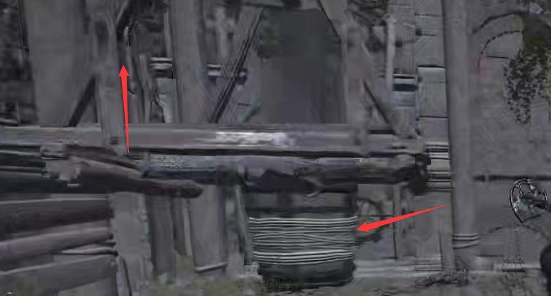 14.再次跑到刚刚的水缸这里,往水缸上面红框框住的绳柱射绳索箭,并拉动,旁边的小门就会打开,流出大量的水
