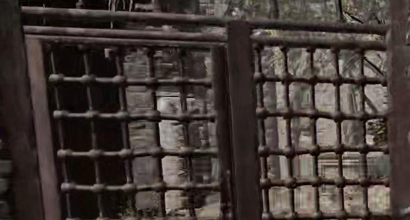 4.庭院的左边有一扇关着的铁门,旁边是古墓的图腾,打开铁门进去