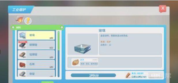 (4)玻璃:在熔炉制造。因为需求量少,平时造一些有备无患。