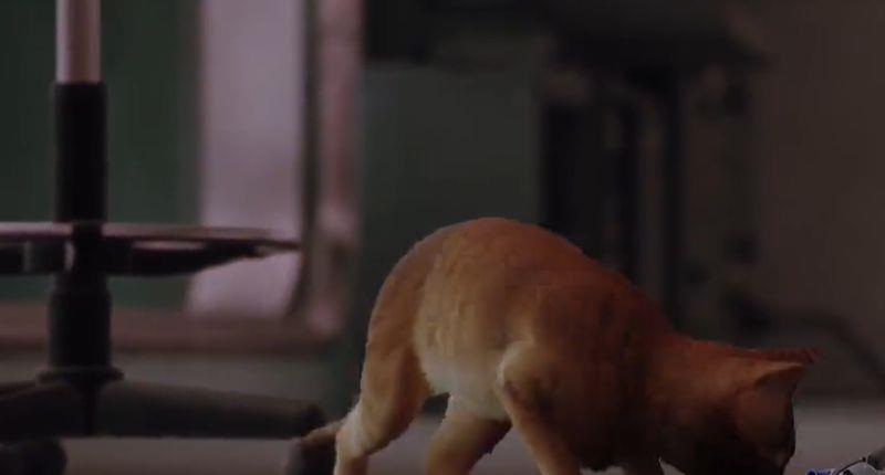 完成使命的B-12从控制台上摔落,猫猫跳下去亲昵地蹭着彻底毁坏的机器人。