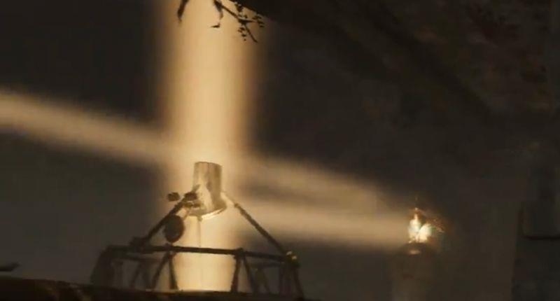 2、来到1号镜子前,转动镜子使阳光射到左边的连接1号2号的柱子上,然后就可以通过柱子攀爬到2号镜子处。