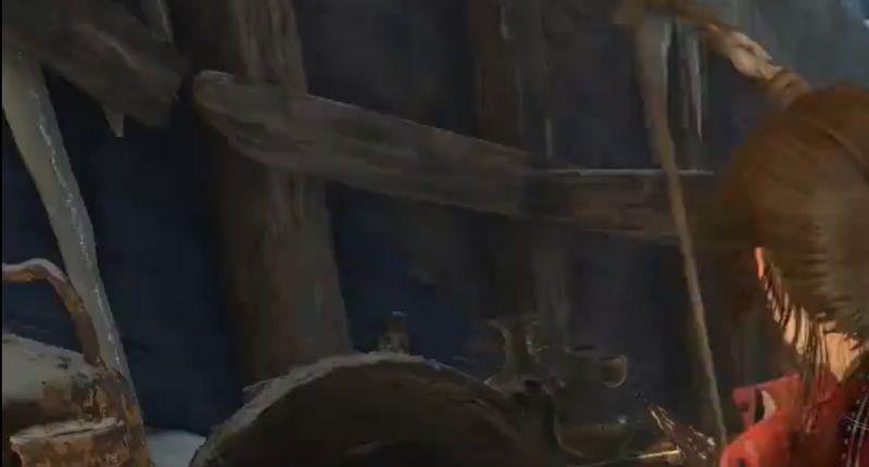9.沿着砸出的木制梯子,往左爬,平台上有另外一个转盘,同样要撬开转盘