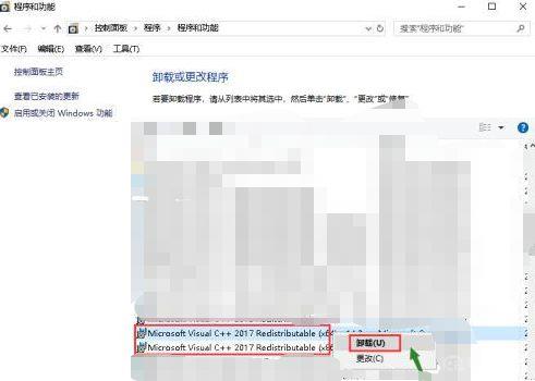 5.在程序库中找到,找到mirosoft visul c 2017有两个分别是x86和64分别右键单击选择卸载。