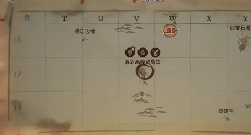 6、最后一个任务,最后一个的地图可能是“红宝石瀑布,坐标 Y--16 ”,也可能是“莫罗高峰贸易岛 坐标 V--17”,具体哪一个岛屿就看你们的地图显示是哪一个岛屿了,我这里是“莫罗高峰贸易岛”