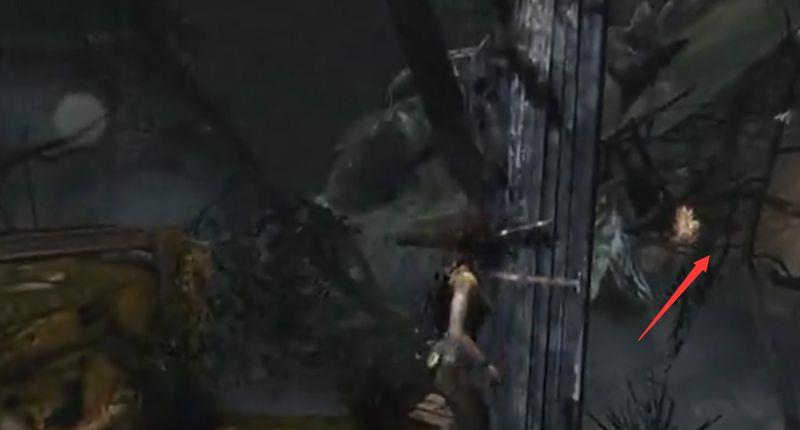 7、然后进去山洞,去到后面,射箭把油灯打掉,把木板点燃。