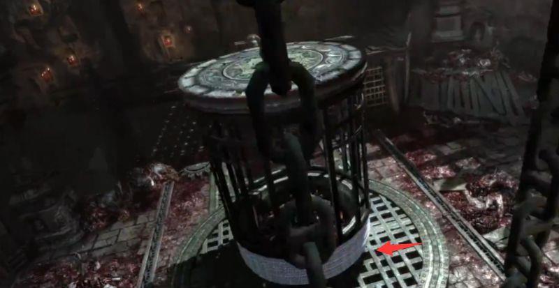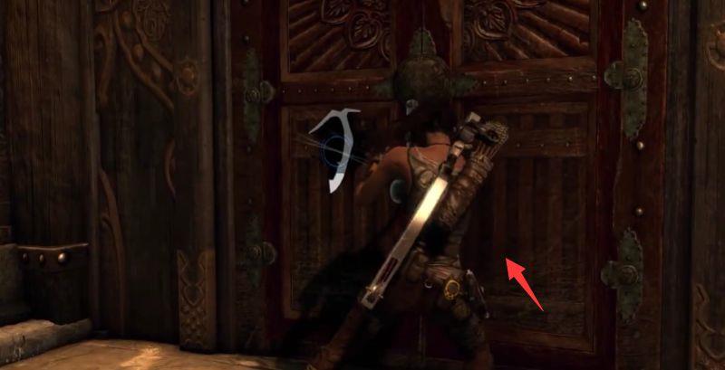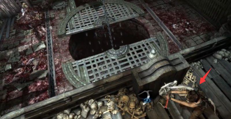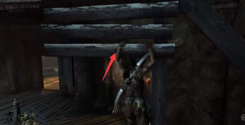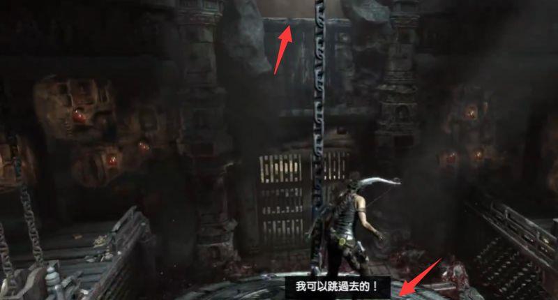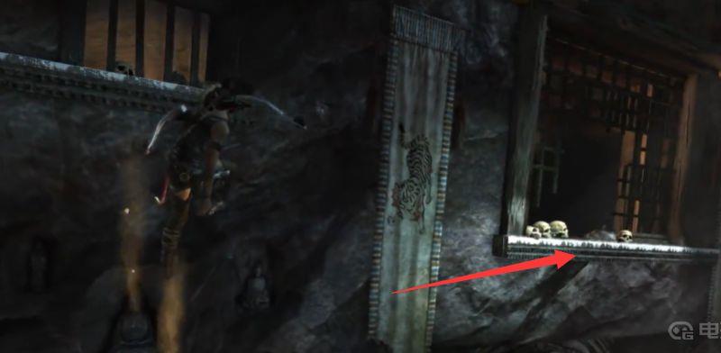 18、用绳索箭矢拉动铁笼使其荡向我们,我们跳上去,惯性会使铁笼荡向另外一端,抓住时机,跳到上方的缺口。