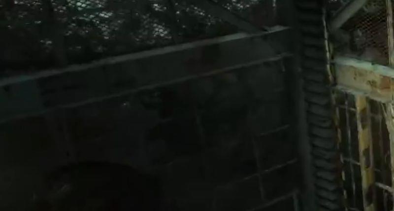 3、然后电梯下坠,进到电梯里,翻过图中的洞。把二楼三楼的门撬开。