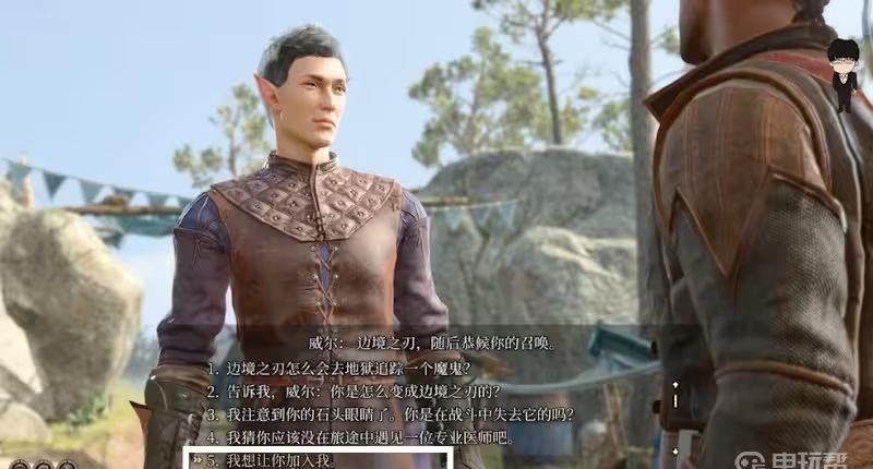 推荐对话上第一个选项选3,之后的选项看个人喜好,可以了解到威尔身上一些背景故事。最后选项如果人数未满4人则可以选择加入队伍,否则就是去营地等着。